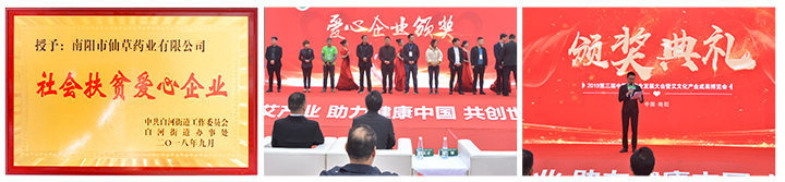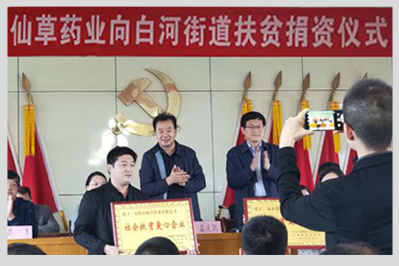 公司為白河街道貧困戶捐助30萬元,做為股金入股企業(yè),年分紅利3萬元,由街道辦事處為貧困戶購買公益性崗位和做為貧困戶收益,為貧困戶提供更加有效的就業(yè)保障。提高貧困戶收入。2018年10月16日舉行隆重的授牌儀式,會上市領(lǐng)導(dǎo)對南陽仙草藥業(yè)有限公司的扶貧工作給予高度贊場和肯定,并鼓勵其他企業(yè)向仙草藥業(yè)學(xué)習(xí)。